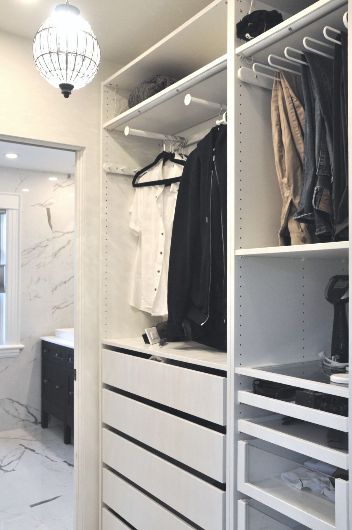 The renovation included a complete reconfiguration of the en-suite bathroom as well as the addition of an adjoining walk-in closet, allowing for a more cohesive and efficient layout. Clean architectural lines, a timeless black-and-white palette, and durable, high-quality materials were selected to ensure longevity and everyday ease.